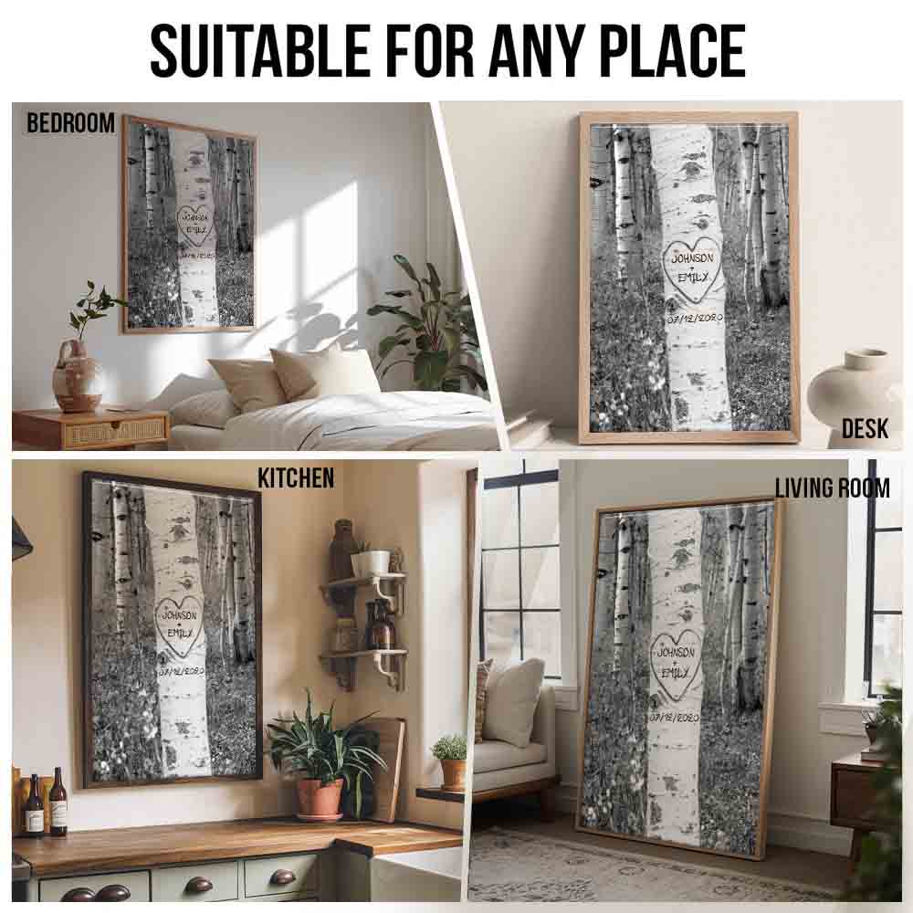 Couple Names Tree Carving - Personalized Canvas Prints - Gift For Her/Him, Wife/Husband, Girlfriend/Boyfriend on Anniversary, Valentine's Day